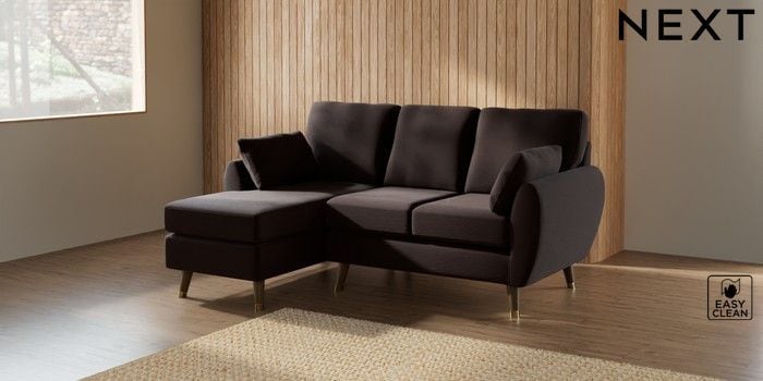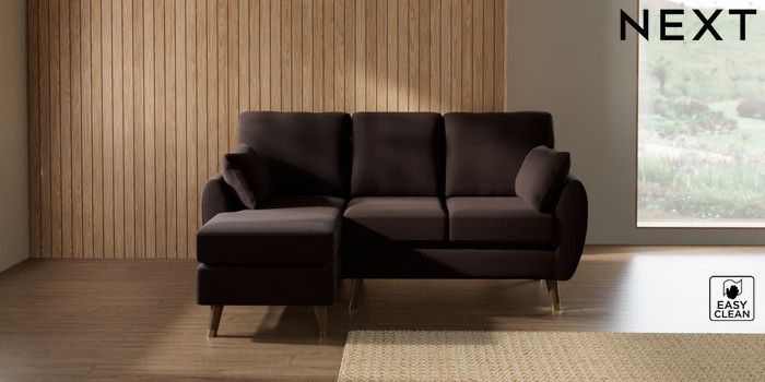 7.3.1 Buy Wilson Small Sofa Chaise - Left Hand Fine Chenille Easy Clean Chocolate Brown Low Retro Tapered Metal Cap - Mid from the Laura Ashley online shop