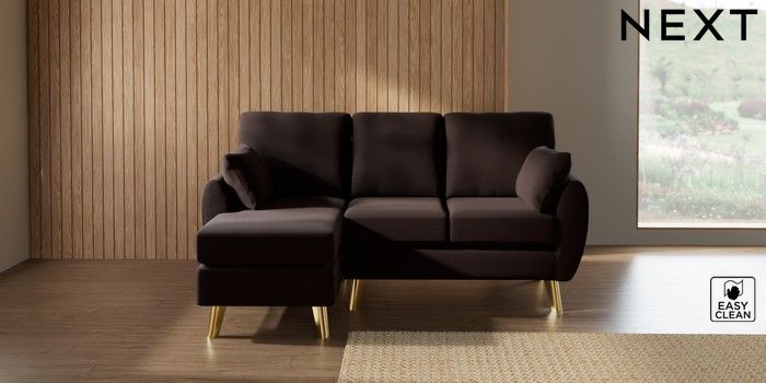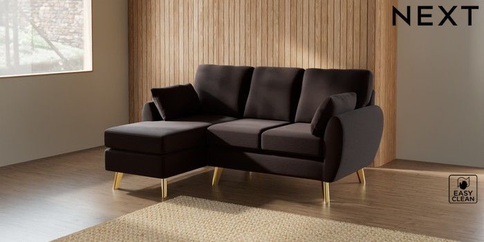 7.3.1 Buy Wilson Small Sofa Chaise - Left Hand Fine Chenille Easy Clean Chocolate Brown Metal Tapered - Gold from the Laura Ashley online shop