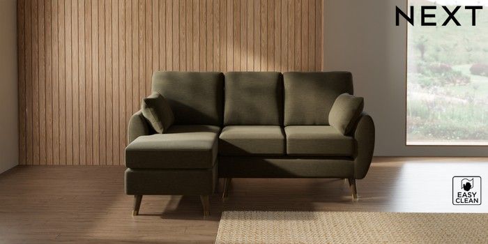 7.3.1 Buy Wilson Small Sofa Chaise - Left Hand Fine Chenille Easy Clean Dark Moss Green Low Retro Tapered Metal Cap - Mid from the Laura Ashley online shop