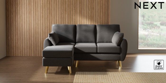 7.3.1 Buy Wilson Small Sofa Chaise - Left Hand Fine Chenille Easy Clean Dark Smoke Grey Metal Tapered - Gold from the Laura Ashley online shop