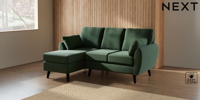 7.3.1 Buy Wilson Small Sofa Chaise - Left Hand Fine Chenille Easy Clean Mid Khaki Green Retro Tapered - Dark from the Laura Ashley online shop