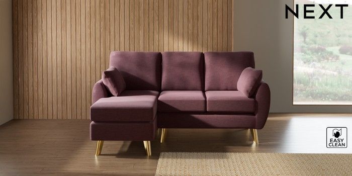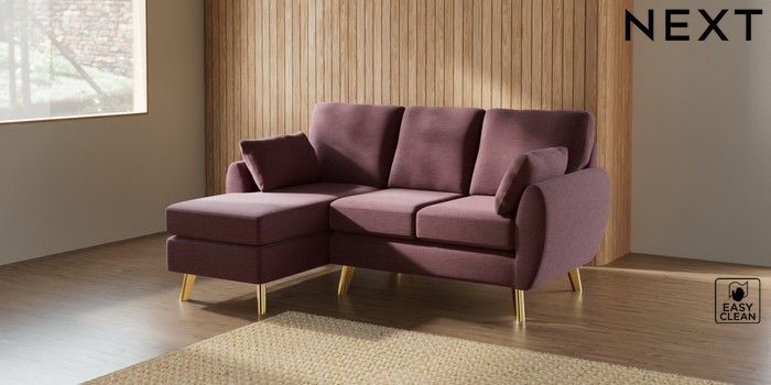 7.3.1 Buy Wilson Small Sofa Chaise - Left Hand Fine Chenille Easy Clean Mid Mulberry Purple Metal Tapered - Gold from the Laura Ashley online shop