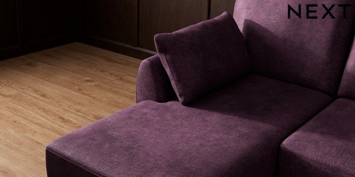 7.3.1 Buy Wilson Small Sofa Chaise - Left Hand Plush Chenille Dark Plum Purple Retro Tapered - Mid from the Laura Ashley online shop