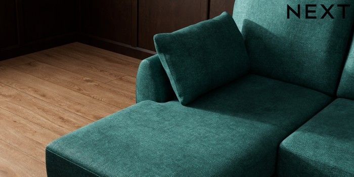 7.3.1 Buy Wilson Small Sofa Chaise - Left Hand Plush Chenille Dark Teal Green Retro Tapered - Mid from the Laura Ashley online shop