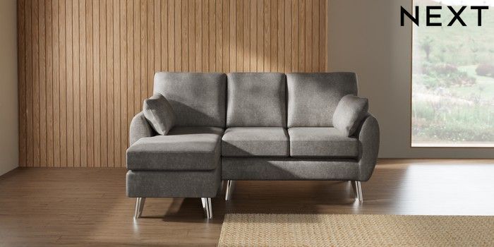 7.3.1 Buy Wilson Small Sofa Chaise - Left Hand Plush Chenille Light Grey Metal Tapered - Chrome from the Laura Ashley online shop