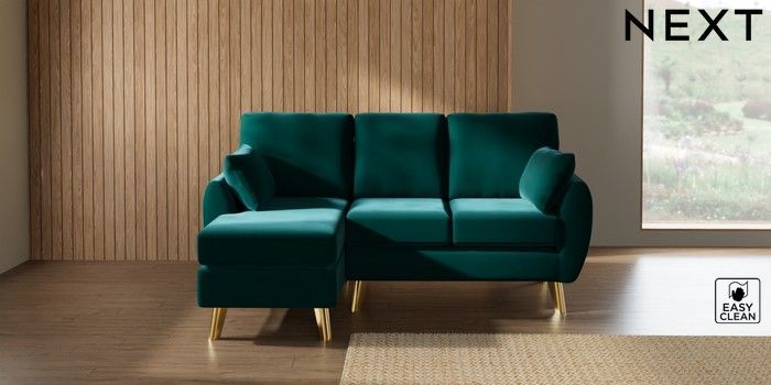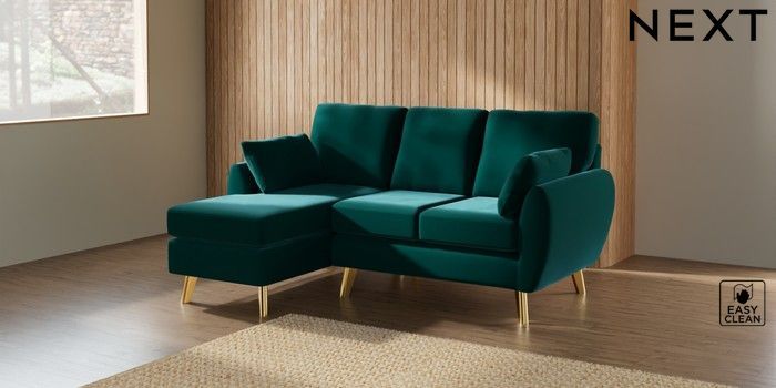 7.3.1 Buy Wilson Small Sofa Chaise - Left Hand Plush Velvet Easy Clean Juniper Green Metal Tapered - Gold from the Laura Ashley online shop