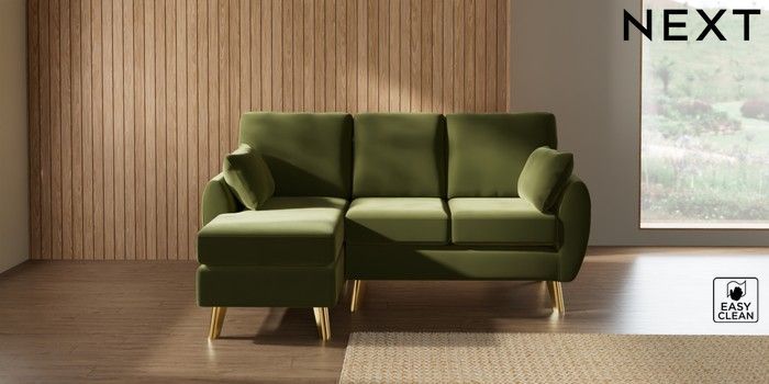 7.3.1 Buy Wilson Small Sofa Chaise - Left Hand Plush Velvet Easy Clean Mid Olive Green Metal Tapered - Gold from the Laura Ashley online shop