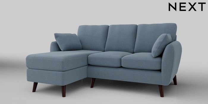 6.12.1 Buy Wilson Small Sofa Chaise - Left Hand Relaxed Linen Look Mid Blue Retro Tapered - Dark Brown from the Laura Ashley online shop Click here to use our website with more accessibility support, for example screen readers