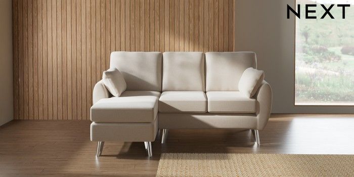 7.3.1 Buy Wilson Small Sofa Chaise - Left Hand Studio Chenille Oyster Metal Tapered - Chrome from the Laura Ashley online shop Click here to use our website with more accessibility support, for example screen readers