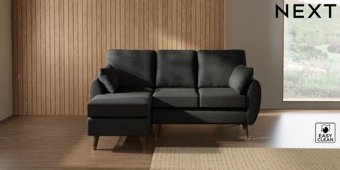 7.3.1 Buy Wilson Small Sofa Chaise - Left Hand Tweedy Blend Easy Clean Charcoal Grey Low Retro Tapered Metal Cap - Mid from the Laura Ashley online shop