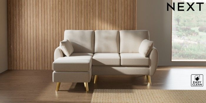 7.3.1 Buy Wilson Small Sofa Chaise - Left Hand Tweedy Blend Easy Clean Oyster Metal Tapered - Gold from the Laura Ashley online shop