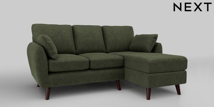 6.12.1 Buy Wilson Small Sofa Chaise - Right Hand Boucle Chenille Dark Moss Green Retro Tapered - Dark Brown from the Laura Ashley online shop Click here to use our website with more accessibility support, for example screen readers