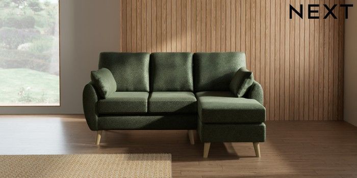 7.3.1 Buy Wilson Small Sofa Chaise - Right Hand Boucle Chenille Dark Moss Green Retro Tapered - Light from the Laura Ashley online shop