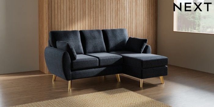 7.3.1 Buy Wilson Small Sofa Chaise - Right Hand Boucle Chenille Dark Slate Blue Metal Tapered - Gold from the Laura Ashley online shop