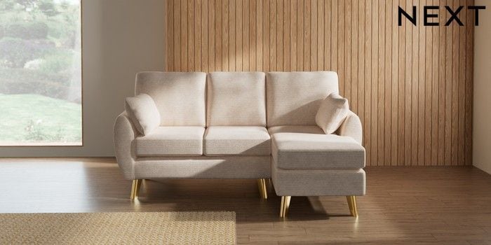 7.3.1 Buy Wilson Small Sofa Chaise - Right Hand Boucle Chenille Oyster Metal Tapered - Gold from the Laura Ashley online shop