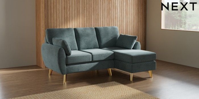 7.3.1 Buy Wilson Small Sofa Chaise - Right Hand Chunky Chenille Light Teal Green Metal Tapered - Gold from the Laura Ashley online shop