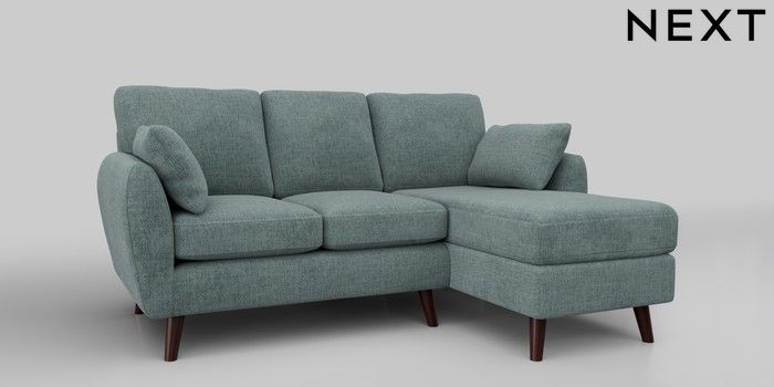 6.12.1 Buy Wilson Small Sofa Chaise - Right Hand Chunky Chenille Light Teal Green Retro Tapered - Dark Brown from the Laura Ashley online shop Click here to use our website with more accessibility support, for example screen readers