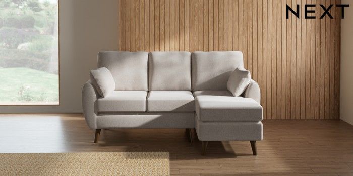 7.3.1 Buy Wilson Small Sofa Chaise - Right Hand Chunky Chenille Oyster Retro Tapered - Mid from the Laura Ashley online shop