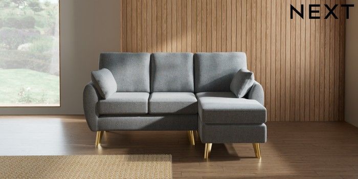 7.3.1 Buy Wilson Small Sofa Chaise - Right Hand Chunky Marl Mid Grey Metal Tapered - Gold from the Laura Ashley online shop