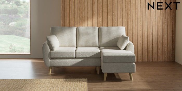 7.3.1 Buy Wilson Small Sofa Chaise - Right Hand Chunky Texture Oyster Retro Tapered - Light from the Laura Ashley online shop Click here to use our website with more accessibility support, for example screen readers