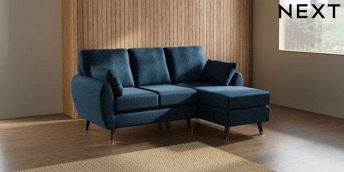 7.3.1 Buy Wilson Small Sofa Chaise - Right Hand Cotswold Chenille Dark Blue Low Retro Tapered Metal Cap - Mid from the Laura Ashley online shop