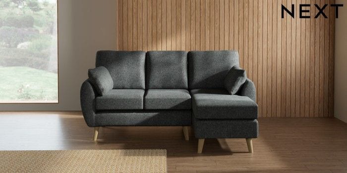 7.3.1 Buy Wilson Small Sofa Chaise - Right Hand Cotswold Chenille Dark Grey Retro Tapered - Light from the Laura Ashley online shop