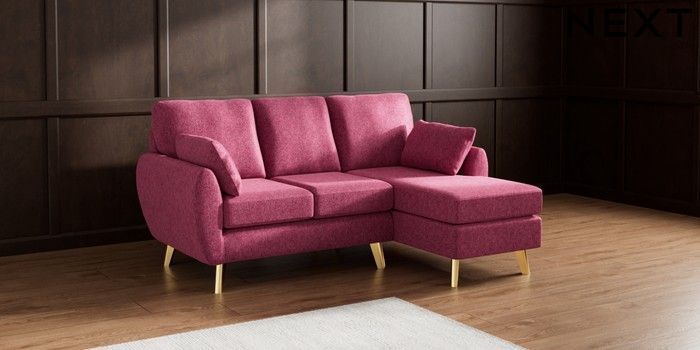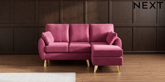 7.3.1 Buy Wilson Small Sofa Chaise - Right Hand Cotswold Chenille Dark Raspberry Pink Metal Tapered - Gold from the Laura Ashley online shop