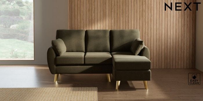 7.3.1 Buy Wilson Small Sofa Chaise - Right Hand Fine Chenille Easy Clean Dark Moss Green Metal Tapered - Gold from the Laura Ashley online shop