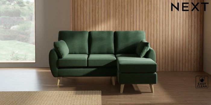 7.3.1 Buy Wilson Small Sofa Chaise - Right Hand Fine Chenille Easy Clean Mid Khaki Green Retro Tapered - Light from the Laura Ashley online shop