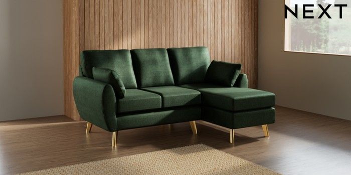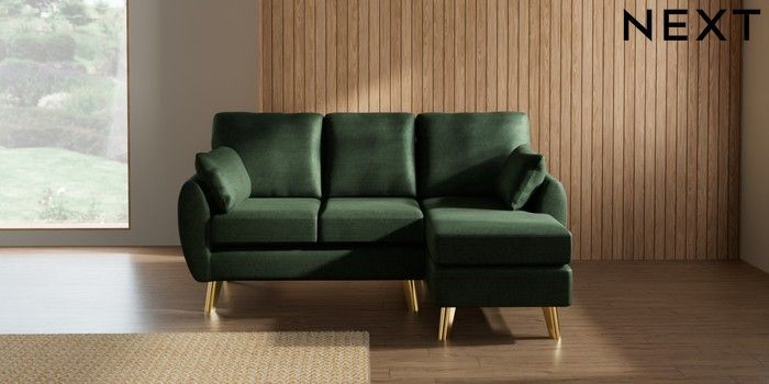7.3.1 Buy Wilson Small Sofa Chaise - Right Hand Luxe Chenille Dark Green Metal Tapered - Gold from the Laura Ashley online shop