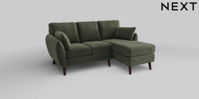 6.12.1 Buy Wilson Small Sofa Chaise - Right Hand Luxe Chenille Mid Green Retro Tapered - Dark Brown from the Laura Ashley online shop Click here to use our website with more accessibility support, for example screen readers