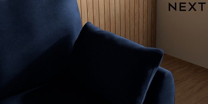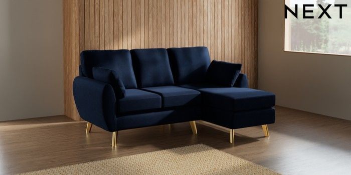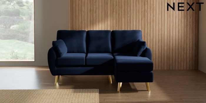 7.3.1 Buy Wilson Small Sofa Chaise - Right Hand Luxe Chenille Navy Blue Metal Tapered - Gold from the Laura Ashley online shop