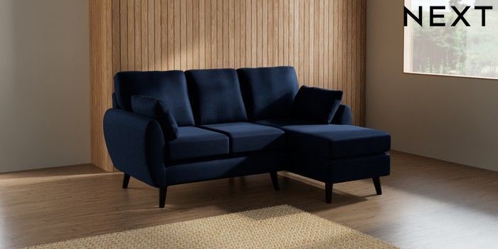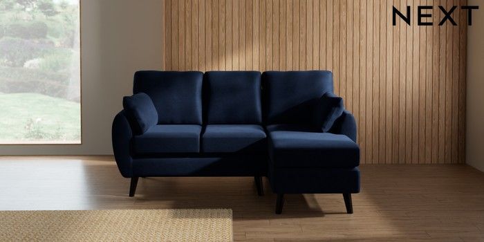 7.3.1 Buy Wilson Small Sofa Chaise - Right Hand Luxe Chenille Navy Blue Retro Tapered - Dark from the Laura Ashley online shop