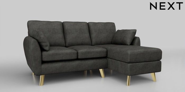 6.12.1 Buy Wilson Small Sofa Chaise - Right Hand Monza Faux Leather Easy Clean Dark Grey Metal Tapered - Gold from the Laura Ashley online shop Click here to use our website with more accessibility support, for example screen readers