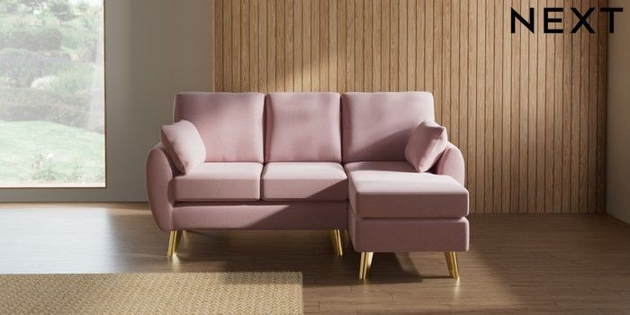 7.3.1 Buy Wilson Small Sofa Chaise - Right Hand Natural Mix Light Rose Pink Metal Tapered - Gold from the Laura Ashley online shop