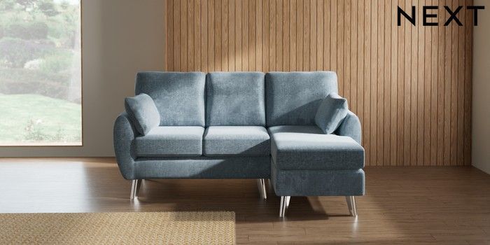 7.3.1 Buy Wilson Small Sofa Chaise - Right Hand Plush Chenille Light Blue Metal Tapered - Chrome from the Laura Ashley online shop