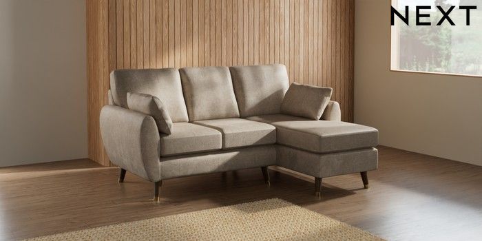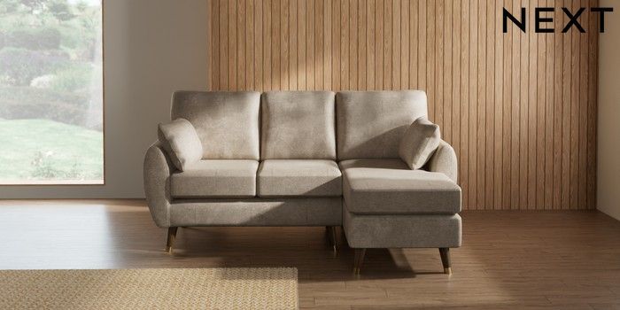 7.3.1 Buy Wilson Small Sofa Chaise - Right Hand Plush Chenille Light Natural Low Retro Tapered Metal Cap - Mid from the Laura Ashley online shop