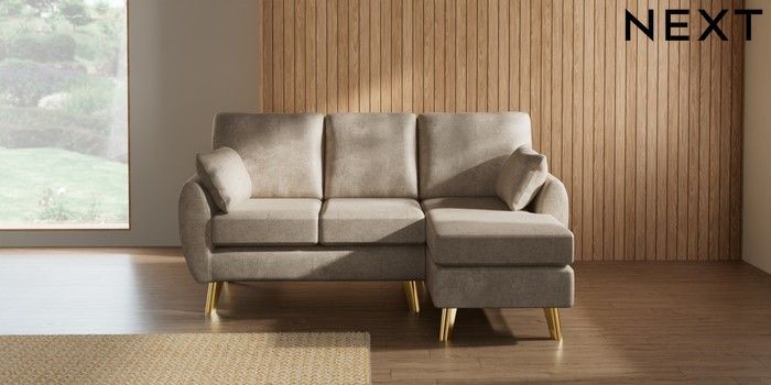 7.3.1 Buy Wilson Small Sofa Chaise - Right Hand Plush Chenille Light Natural Metal Tapered - Gold from the Laura Ashley online shop