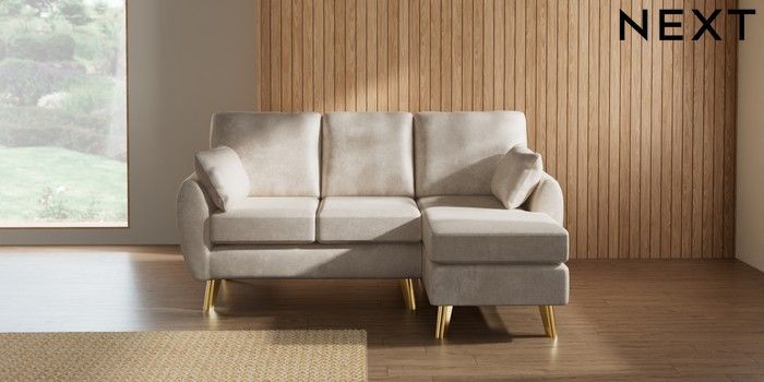 7.3.1 Buy Wilson Small Sofa Chaise - Right Hand Plush Chenille Oyster Metal Tapered - Gold from the Laura Ashley online shop