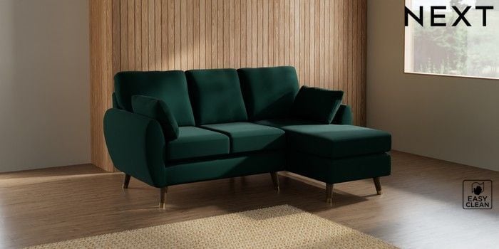 7.3.1 Buy Wilson Small Sofa Chaise - Right Hand Plush Velvet Easy Clean Bottle Green Low Retro Tapered Metal Cap - Mid from the Laura Ashley online shop