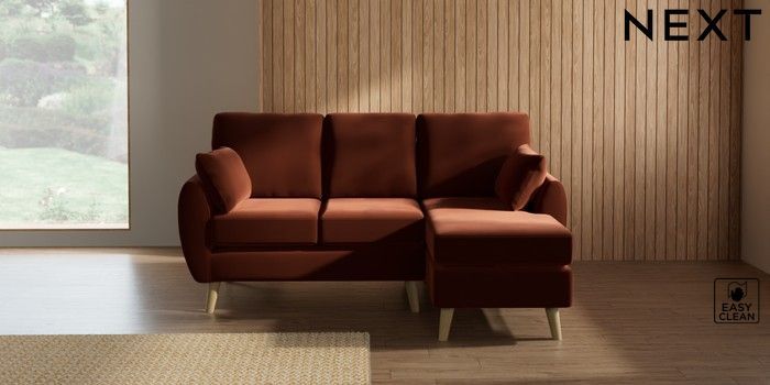 7.3.1 Buy Wilson Small Sofa Chaise - Right Hand Plush Velvet Easy Clean Ginger Orange Retro Tapered - Light from the Laura Ashley online shop