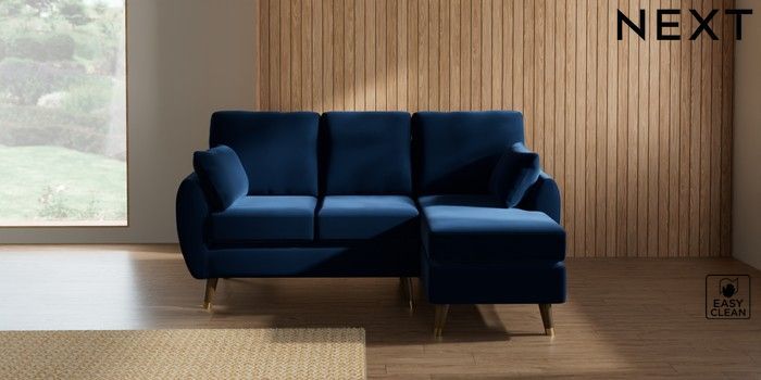 7.3.1 Buy Wilson Small Sofa Chaise - Right Hand Plush Velvet Easy Clean Navy Blue Low Retro Tapered Metal Cap - Mid from the Laura Ashley online shop