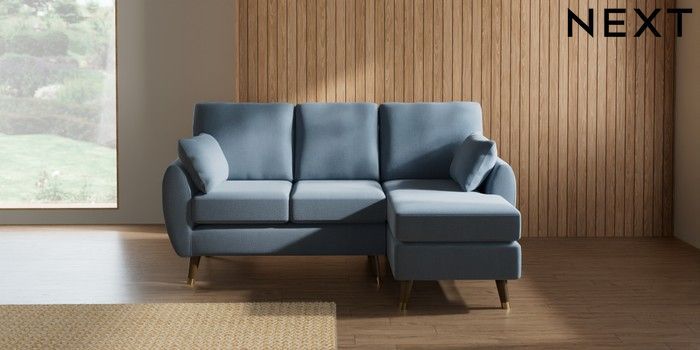 7.3.1 Buy Wilson Small Sofa Chaise - Right Hand Relaxed Linen Look Mid Blue Low Retro Tapered Metal Cap - Mid from the Laura Ashley online shop