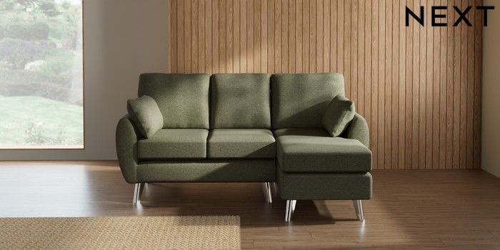 7.3.1 Buy Wilson Small Sofa Chaise - Right Hand Tweedy Chenille Mid Moss Green Metal Tapered - Chrome from the Laura Ashley online shop