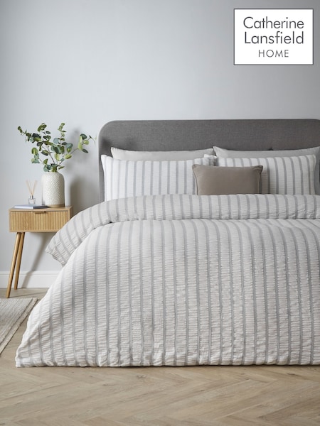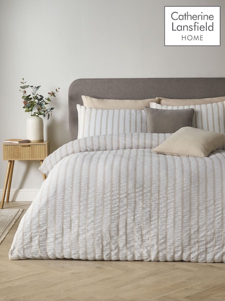 Natural So Soft Seersucker Stripe No Iron Duvet Cover Set