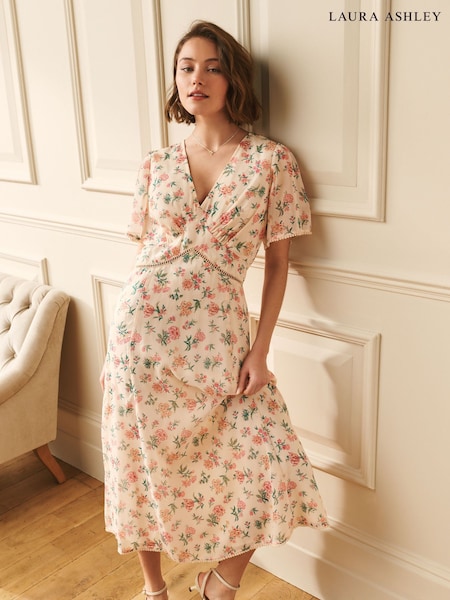 Cream Lavington Print V-Neck Belted Floral Maxi Dress