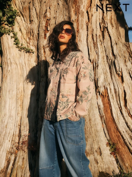 Pink National Trust x Next Denim Cord Collar Barn Jacket