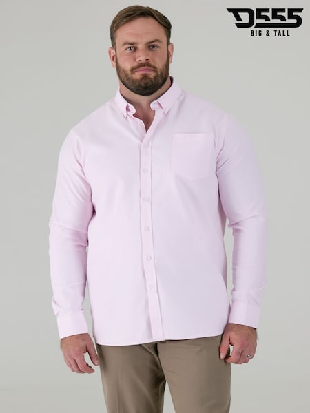 D555 Pink RICHARD Classic Oxford Long Sleeve Button Down Shirt With Chest Pocket