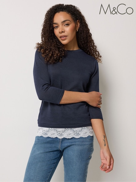 M&Co Blue Lace Hem 3/4 Sleeve Top