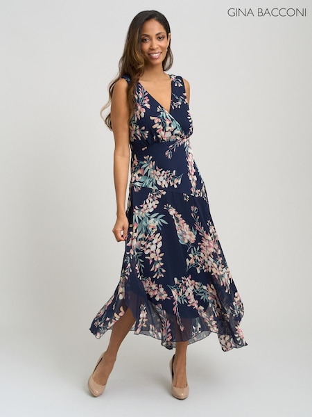 Gina Bacconi Blue India Chiffon Print Dress